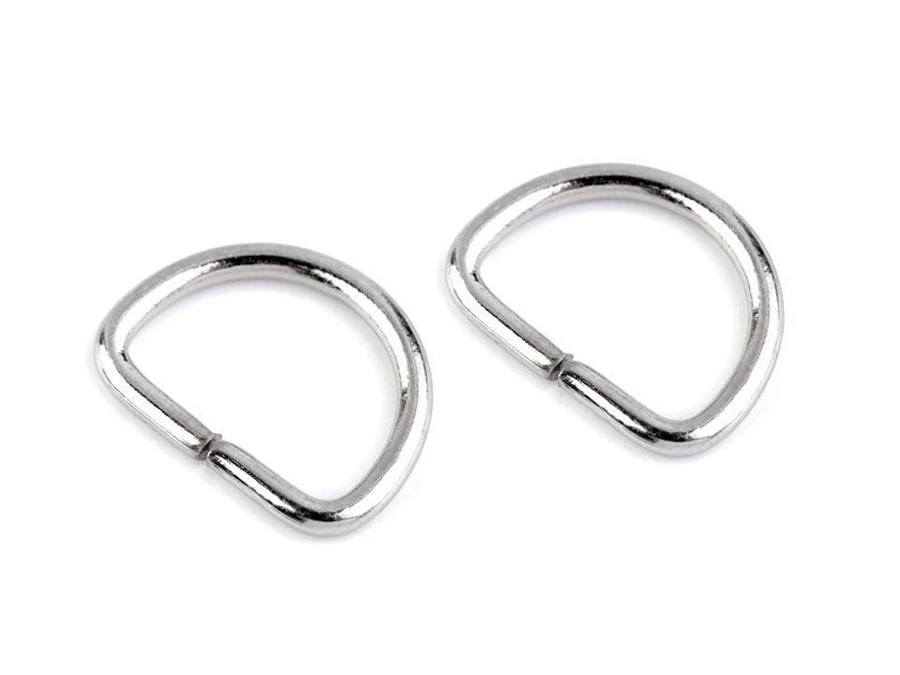 Kovový polkrúžok v tvare D pre použitie na výrobu kabelky, tašky...V mieste spoja nie je zvarený.