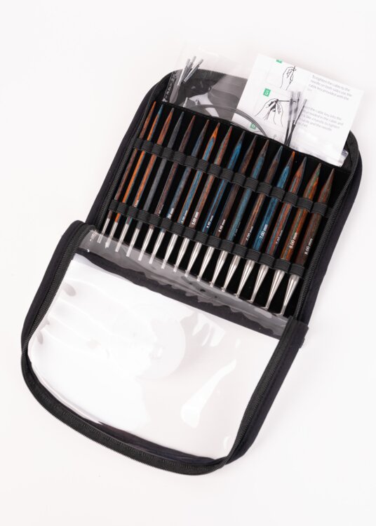 Praktická variabilná sada výmenných ihlíc, ktorú si môžete vziať kamkoľvek so sebou. Táto kompletná súprava obsahuje všetko potrebné na pohodlné pletenie rôznych projektov – od menších doplnkov až po väčšie svetre či šatky.