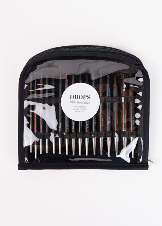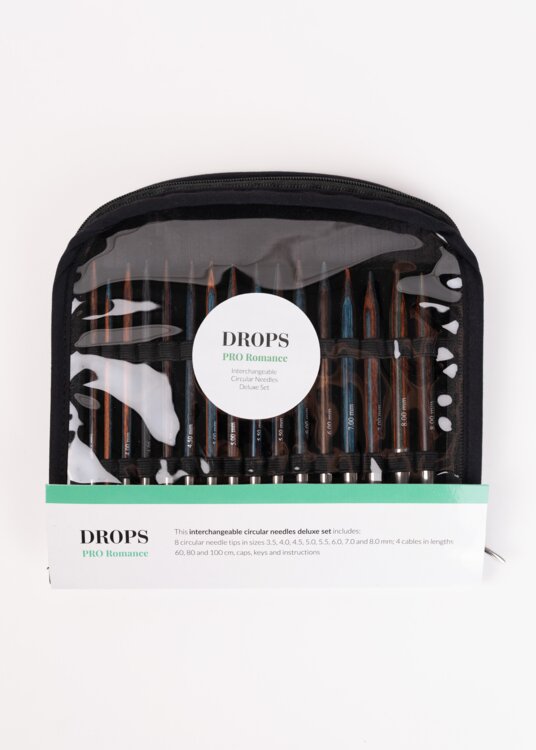 Sada obsahuje 16 drevených výmenných ihlíc Romance (8 párov) vo veľkostiach 3,5 – 8 mm, 4 lanká rôznych dĺžok (60 cm, 2× 80 cm a 100 cm), koncovky na lanká a kľúčiky na jednoduché dotiahnutie závitov. Všetko je uložené v praktickom priehľadnom vinylovom puzdre, ktoré umožňuje prehľadné usporiadanie a jednoduché prenášanie.