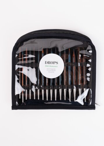 Luxusná sada drevených výmenných ihlíc DROPS Pro Romance s lnkami a spojkami v elegantnom priehľadnom púzdre – pre pletiarky, ktoré ocenia krásu aj funkčnosť.